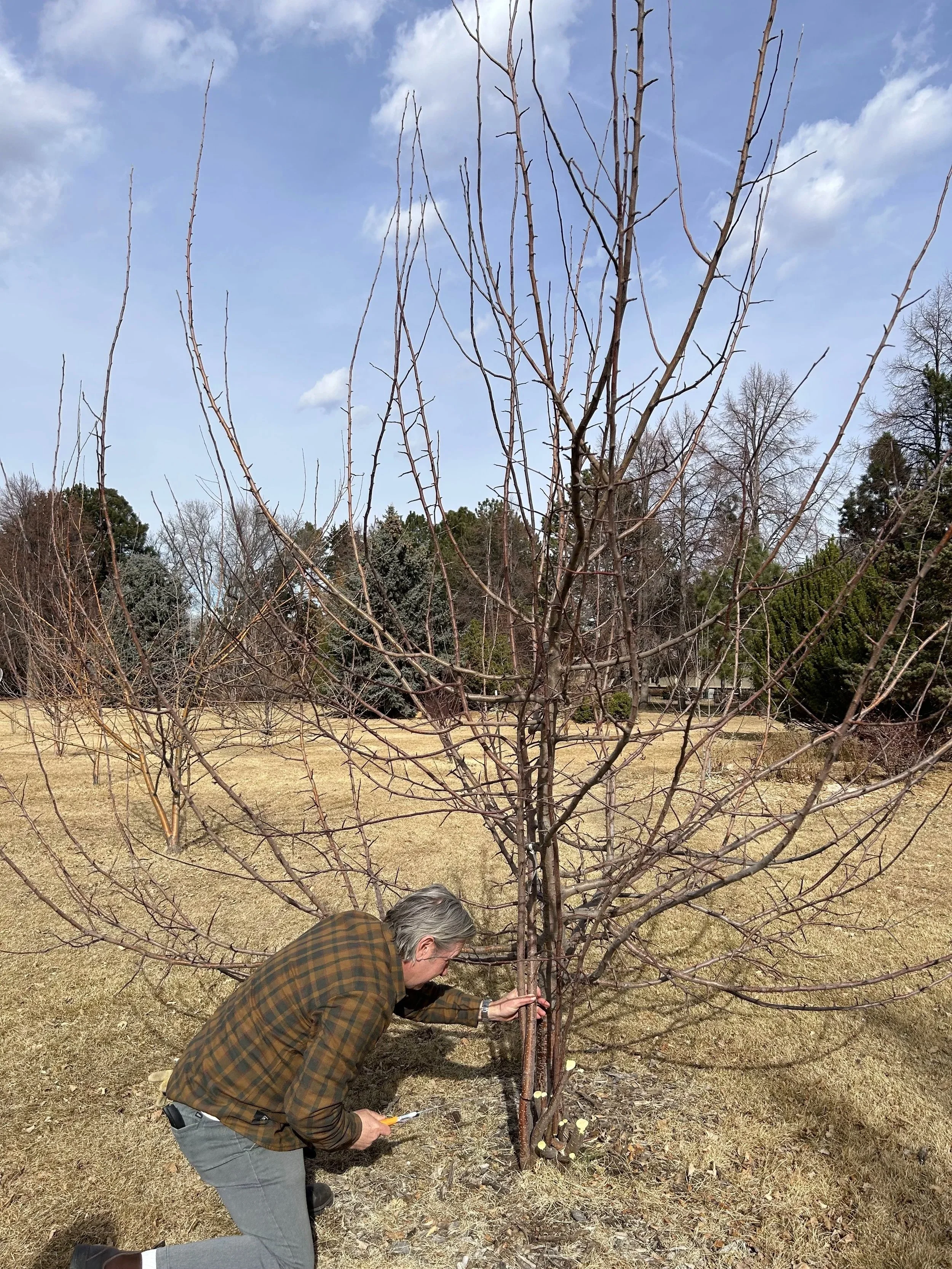 Growth Stimulation: Pruning while the tree is asleep triggers a vigorous growth response in the Spring, helping shape the tree's height and spread for easier picking.